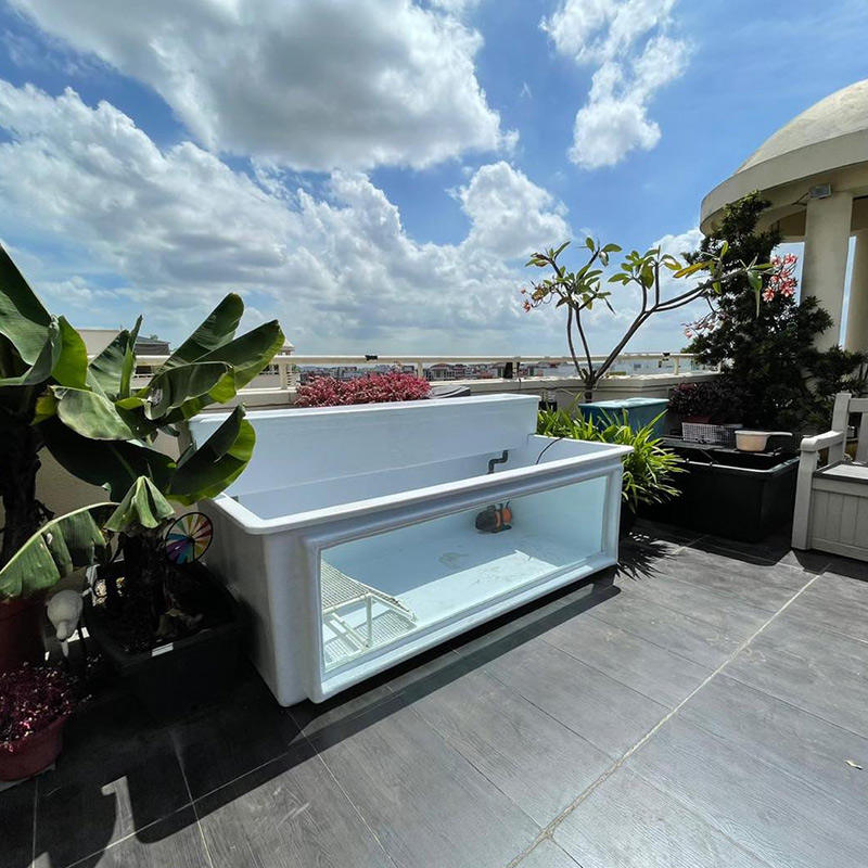 Custom Outdoor Large Big Size fiberglass reinforced fish pond with window koi pond garden