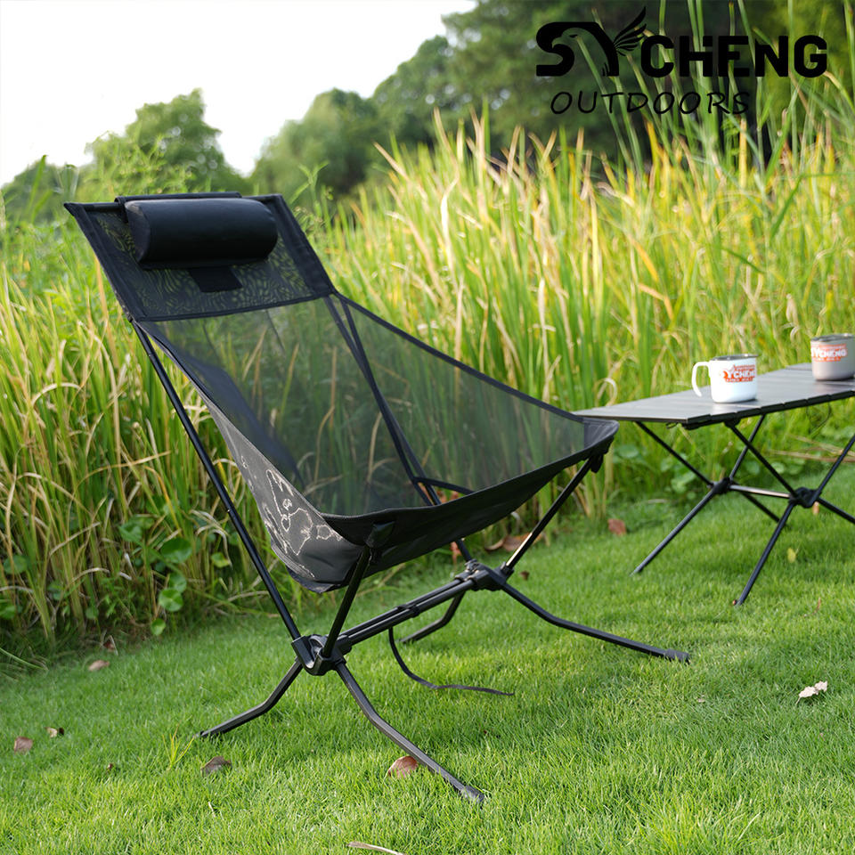 Custom Outdoor Lawn Chair High Back Camping Beach Chair With Removable Adjustable Headrest for Picnic Hiking Fishing
