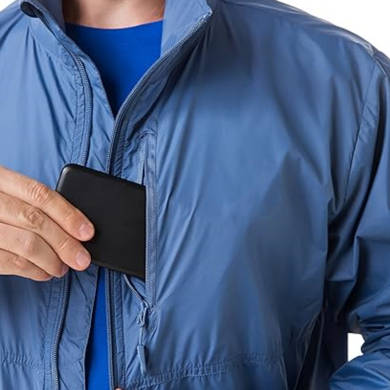 Custom Outdoor Men Lightweight Water Resistant Windbreaker Jacket With Chest Pocket Wholesale Packable Hiking Windproof Coat