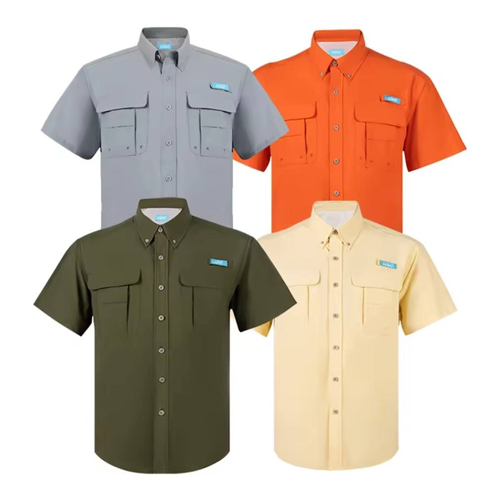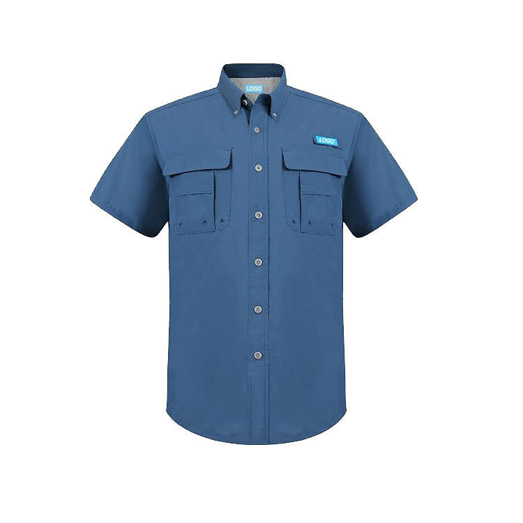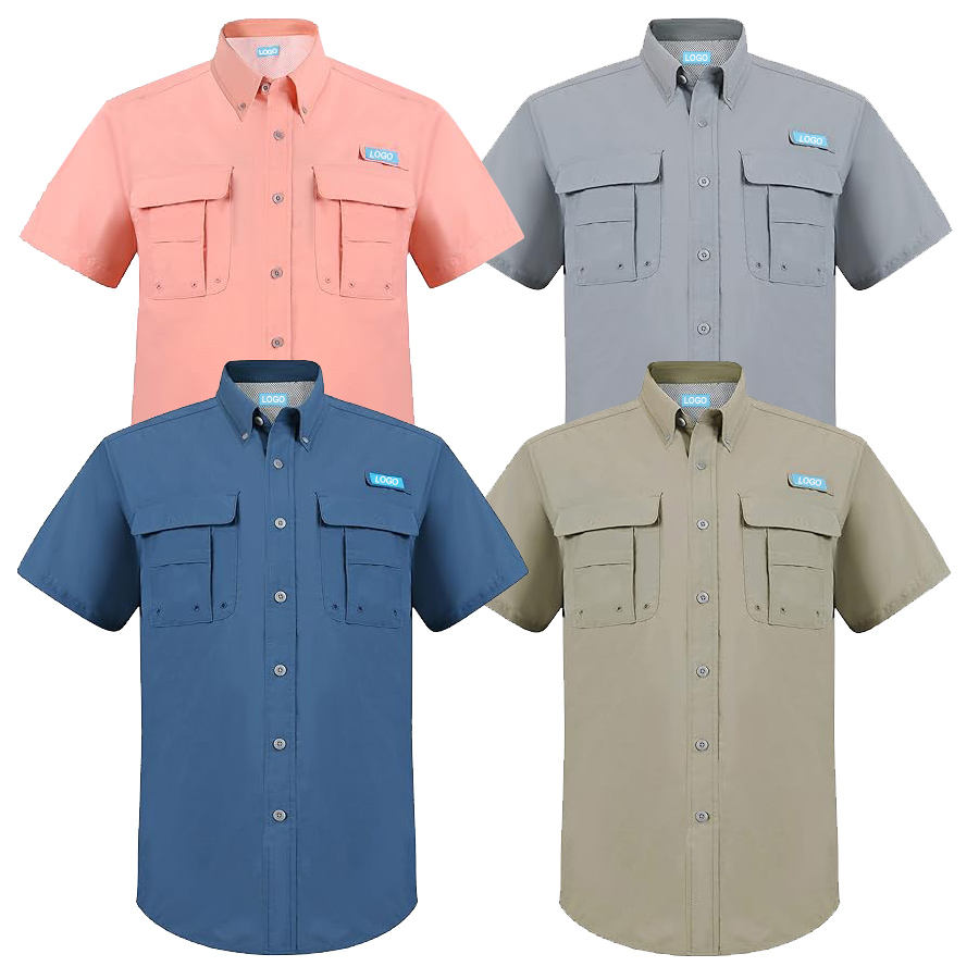Custom Outdoor Two Pocket Short Sleeve Fishing Performance Shirt Quick Dry Button Shirts Tactical Casual for Male