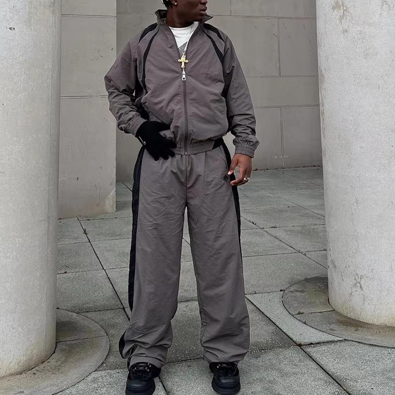 Custom Oversize Sportwear Streetwear Printed Casual Sweatsuit Jacket Jogger Set Windbreaker Men Tracksuit Quick Dry Breathable