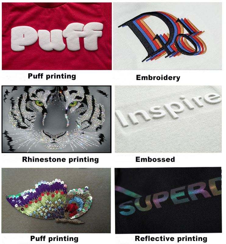 Logo position:Front, back, Left Sleeve, Right Sleeve, lower hem, back neck