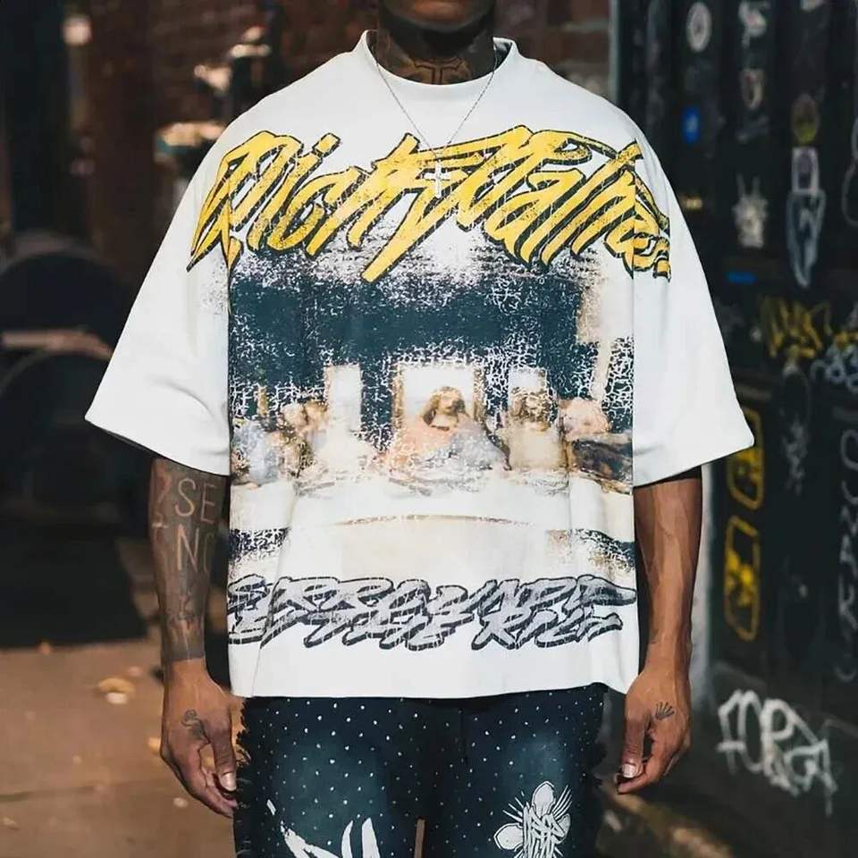 Custom Oversized Harajuku T Shirt Y2K Retro Letter Graphic Print Loose Fit Cotton Short Sleeve Gothic Streetwear Casual Fashion