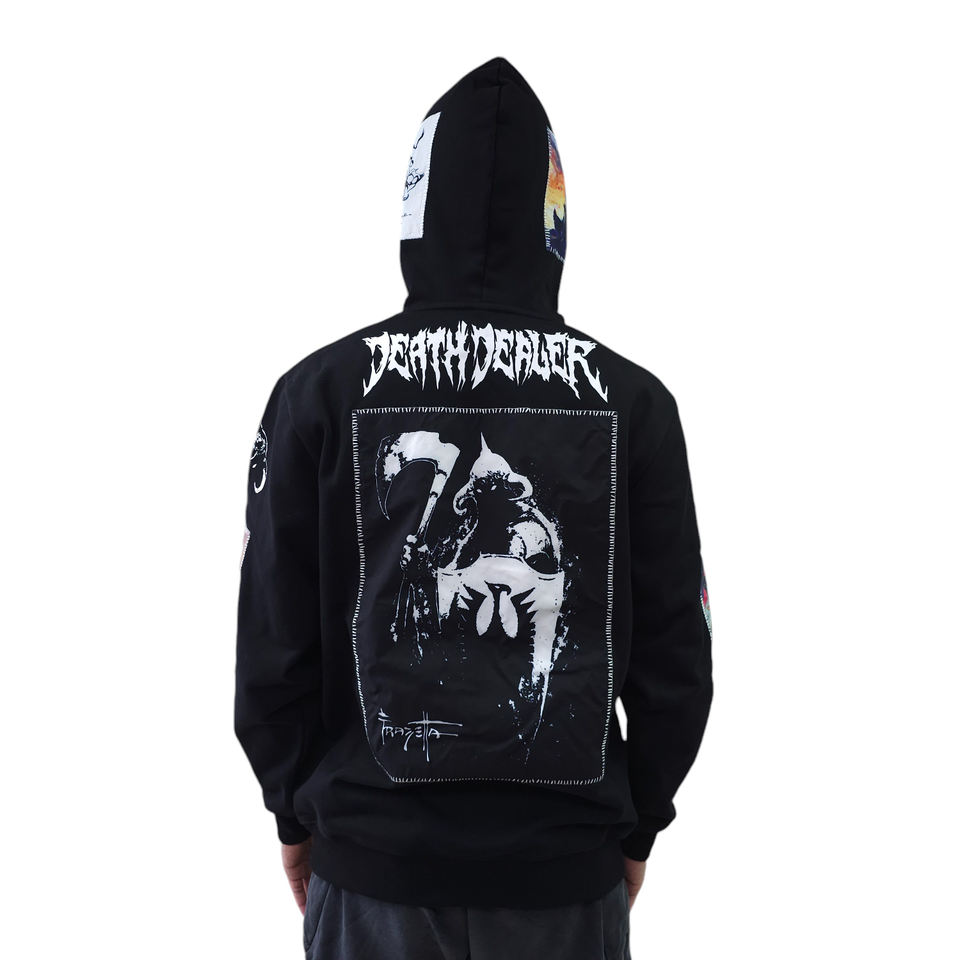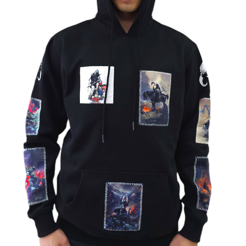 Custom Oversized Men's Heavyweight 100% Cotton Acid Wash French Terry Streetwear Hoodie With Embroidery Patchwork Manufacturer