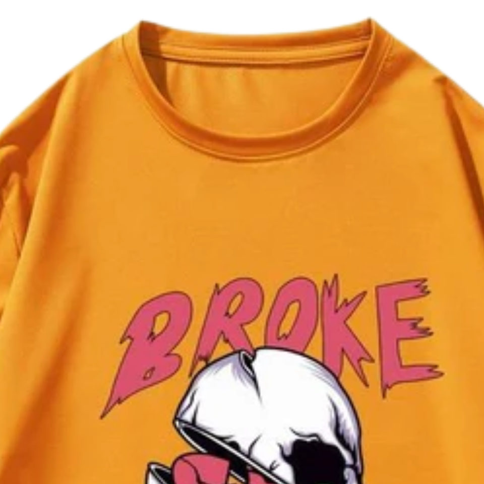 Custom Oversized Orange Graphic T Shirt with Bold Skull and Broken Heart Print Fashion Streetwear Unisex Soft Cotton OEM Factory