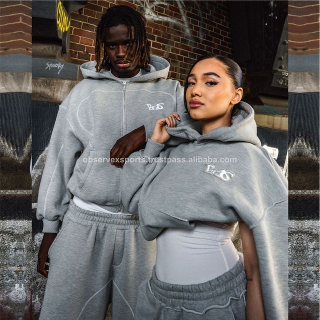 Custom Oversized Unisex Sweatshirt Tracksuit Zip up Hoodies and Sweat Pants Set Tracksuit Sportswear for Sweatsuit Men