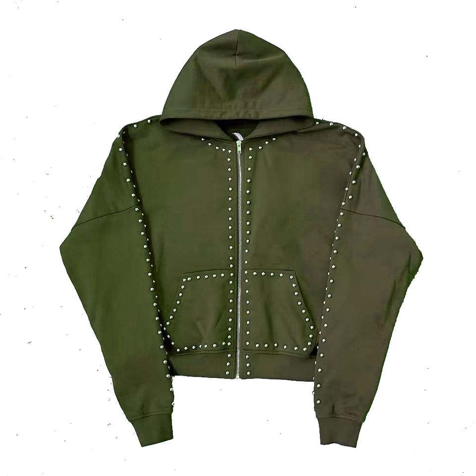 Custom Oversized Zip Up Hoodie Men Rhinestone Design Heavyweight Streetwear Heavyweight Fleece Zip Hoodie