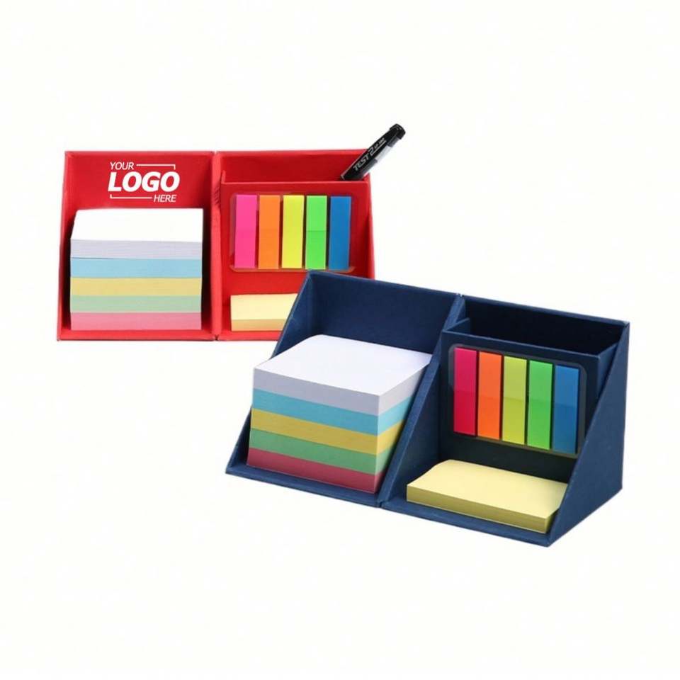 Custom PET Sticky Notes Cube Set with Rotating Foldable Dispenser and Pen Holder Promotional Desk Organizer with Logo
