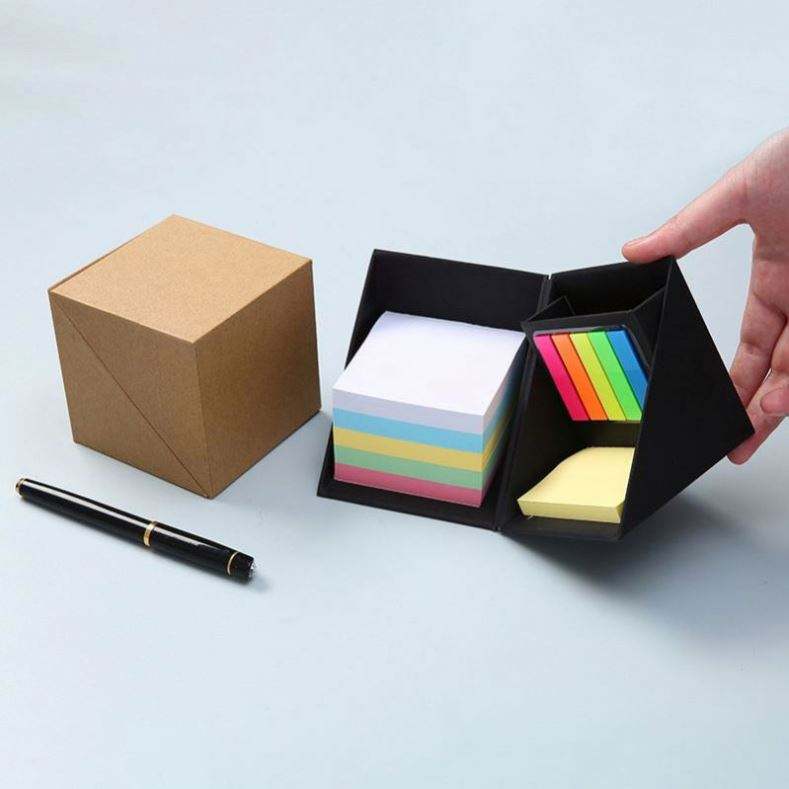 Custom PET Sticky Notes Cube Set with Rotating Foldable Dispenser and Pen Holder Promotional Desk Organizer with Logo