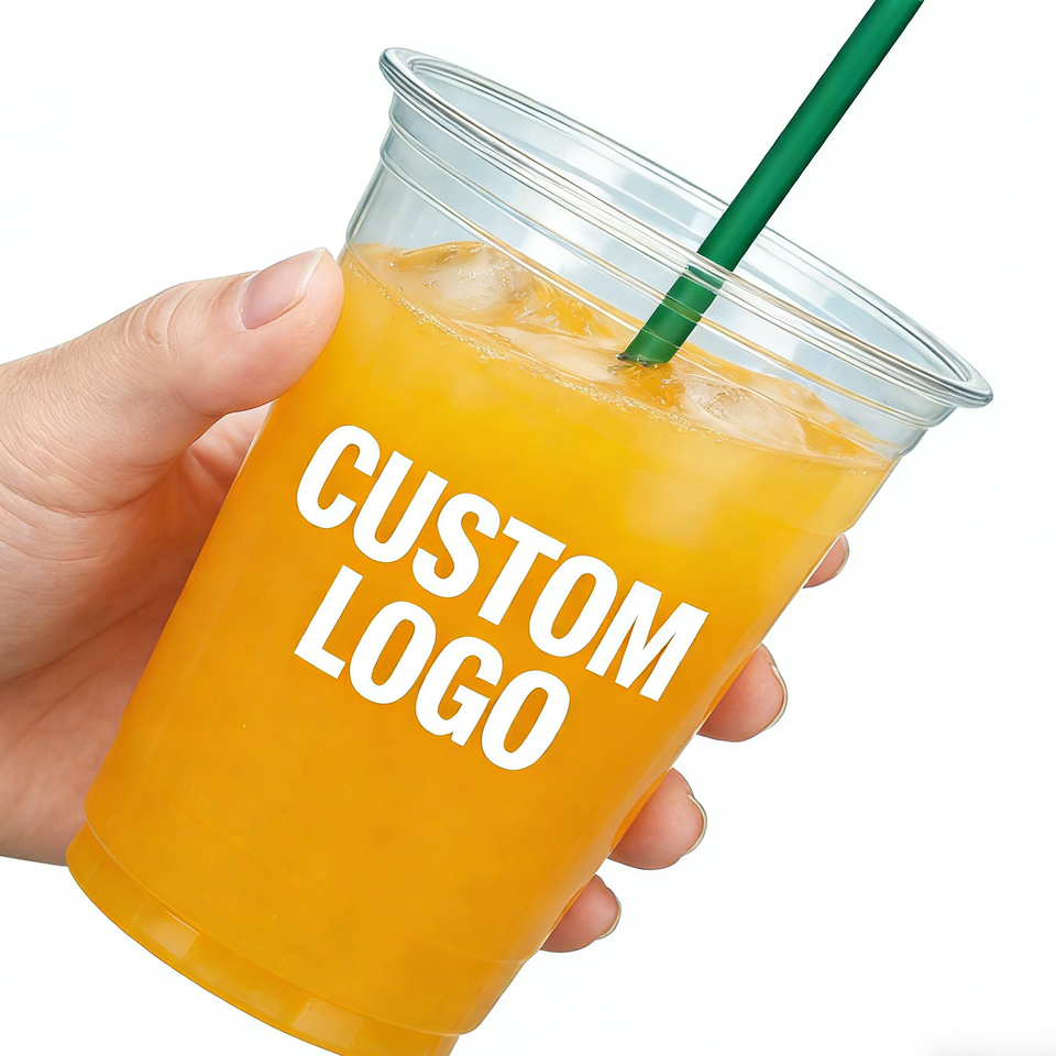 Custom PP Plastic Single Wall 90mm Diameter Wedding Cups with UV Printed Logo for Juice 12oz Disposable Party Supplies