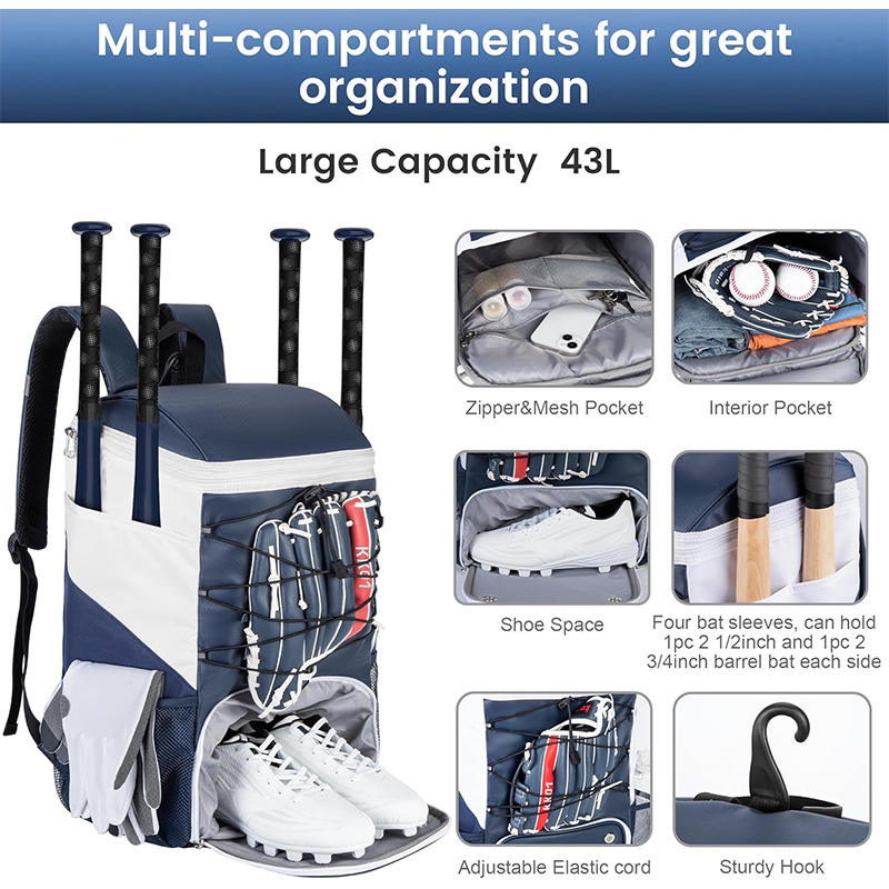 Custom PU leather Waterproof Backpack for Students Schoolbag for Racquet Sports Like Hockey Baseball Softball