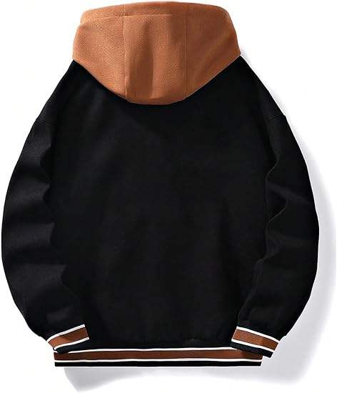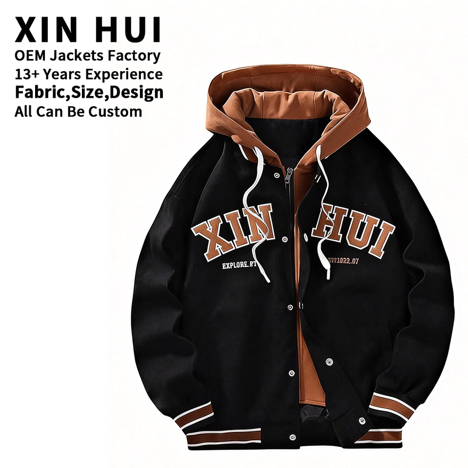 Custom Patch Embroidery Hooded Varsity Jacket Men Two Tone Fleece Bomber Letterman Jacket Streetwear Vintage Baseball Jacket