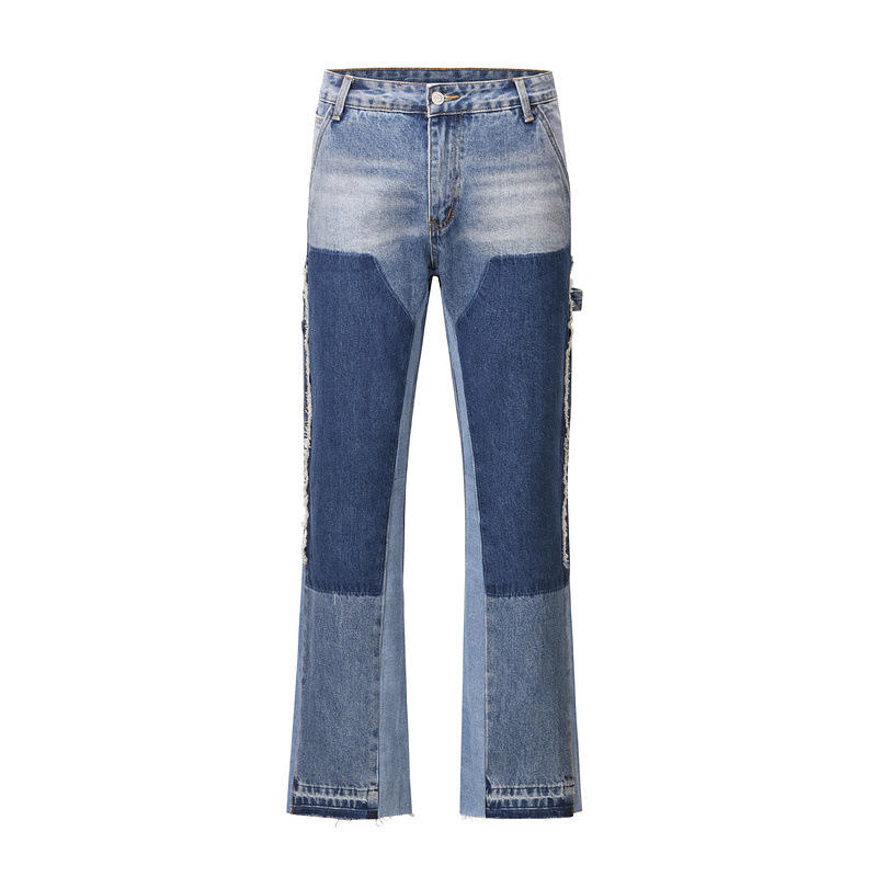 Custom Designer's Casual Stacked Flared Jeans Mid Waist Flat Front Skinny Knitted High Street for Spring Skateboard Hip Hop