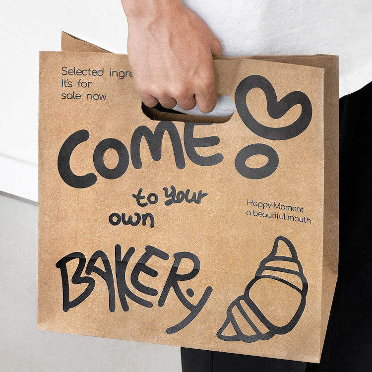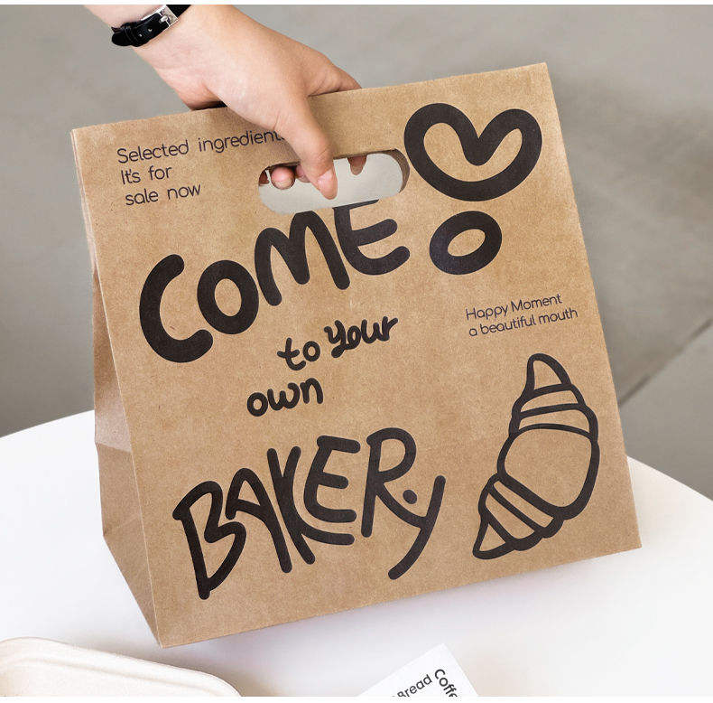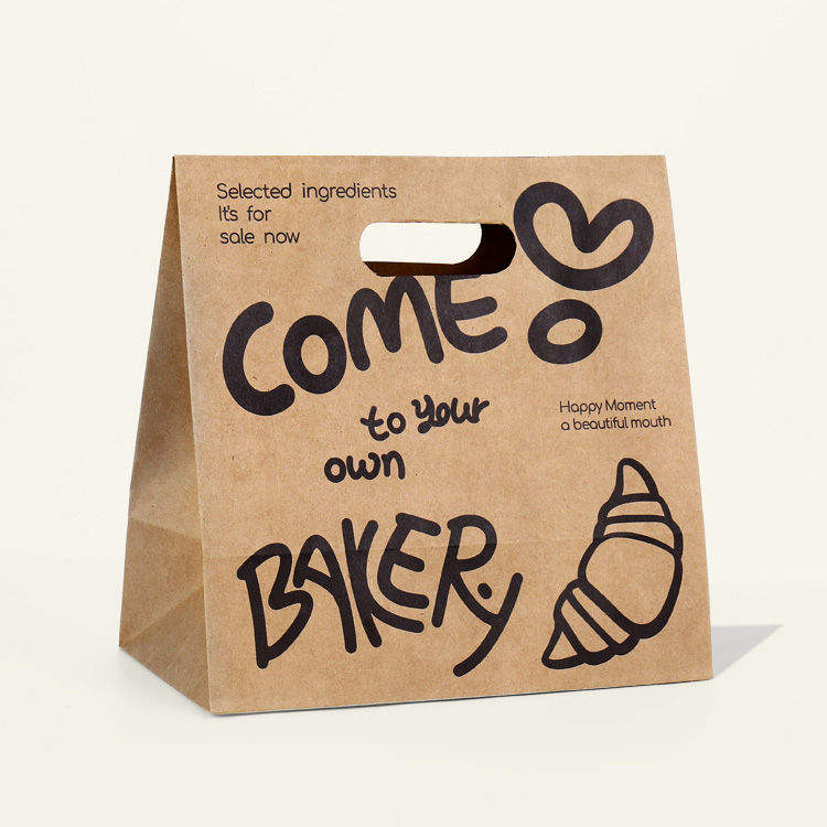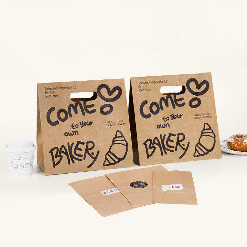 Custom Pattern Biodegradable Kraft Food Paper Bags with Handles for Takeaway, Baking, and Bread
