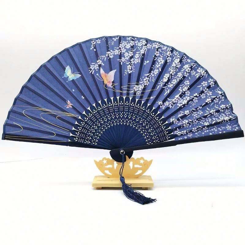 Custom Pattern Folk Style Painted Design Abanicos Bamboo Hand Folding Fan for Sale Performance Decoration Wedding Party Gift