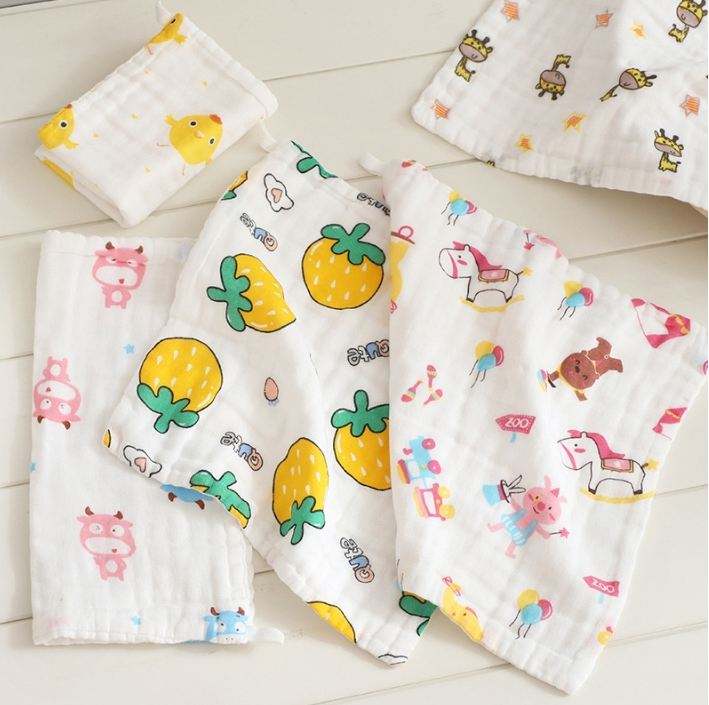 Custom Pattern Square Woven Eco-Friendly Cotton Face Towel for Newborn Baby Burp Cloths & Muslin Washcloths Bathroom Use