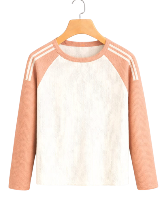 Custom Peach White Raglan Long Sleeve T Shirt Men Ribbed 100% Cotton Crew Neck Casual Baseball Tee OEM Manufacturer Supplier