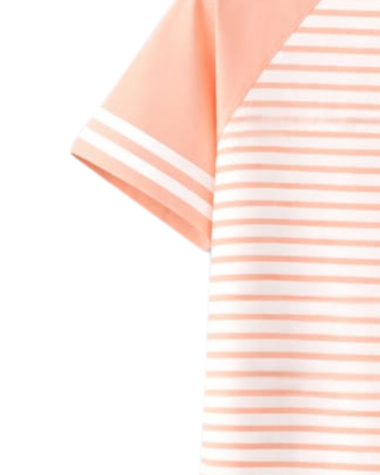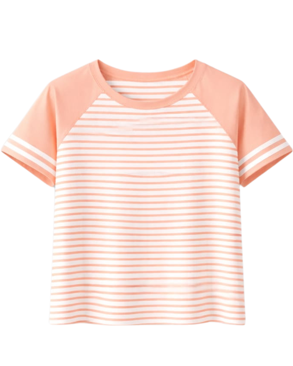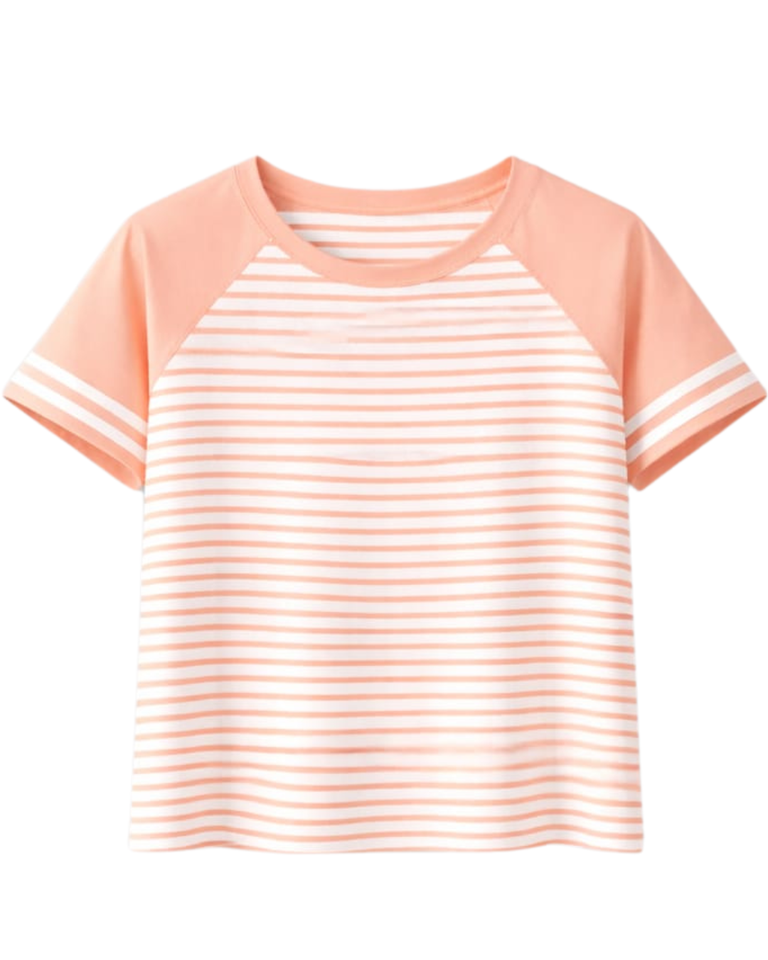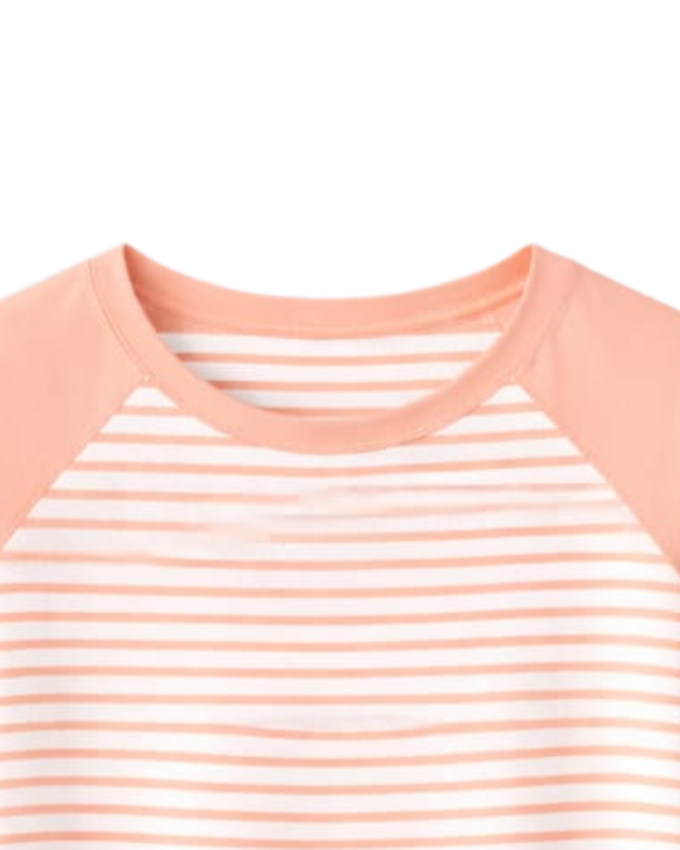 Custom Peach White Striped Raglan T Shirt Cotton Summer Casual Wear Tee Contrast Sleeve Round Neck OEM Supplier Manufacturer