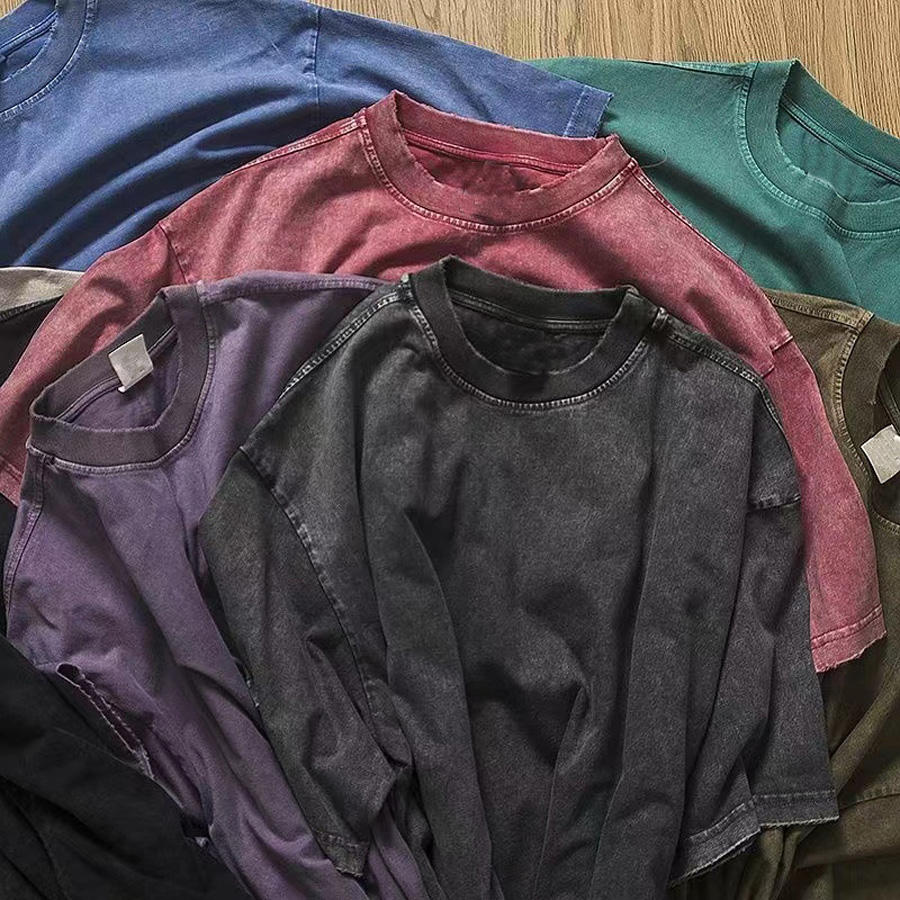 Custom Personalized Acid Wash T-Shirt Oversized Vintage 4XL Heavyweight Jersey Drop Shoulder Plain Pattern Blank Cotton T-Shirt