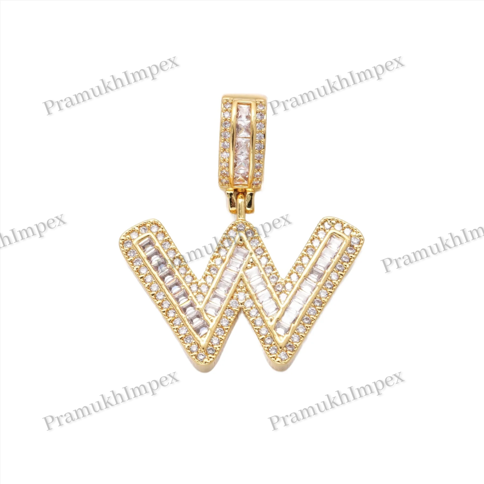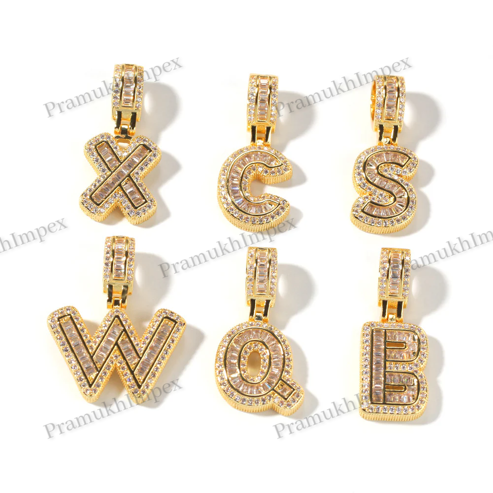 Custom Personalized Hip Hop Moissanite Diamonds Studded Initial Letter Logo A-Z Gold Plated Iced Pendant Indian Exporters Party