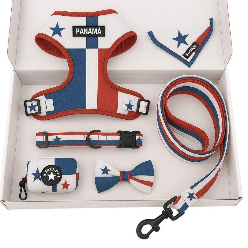 Custom Pet Accessories Gift Set Personalized Dog Harness, Collar, Leash, Bandana, Bow Tie & Poop Bag Holder