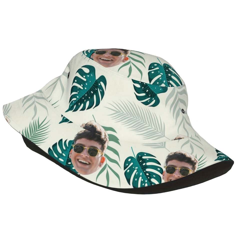 Custom Photo Bucket Hat Personalized Tropical Leaf Design Fun Summer Travel Fishing Cap for Men and Women Cartoon Pattern