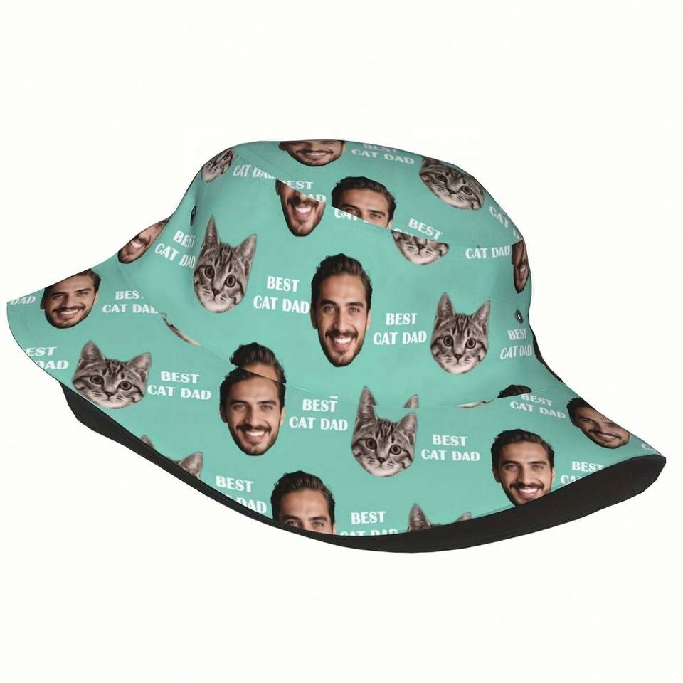 Custom Photo Funny Face Bucket Hat Personalized Wide Brim Fisherman Cat Design Hand Drawn Leaf Breathable for All Season Daily