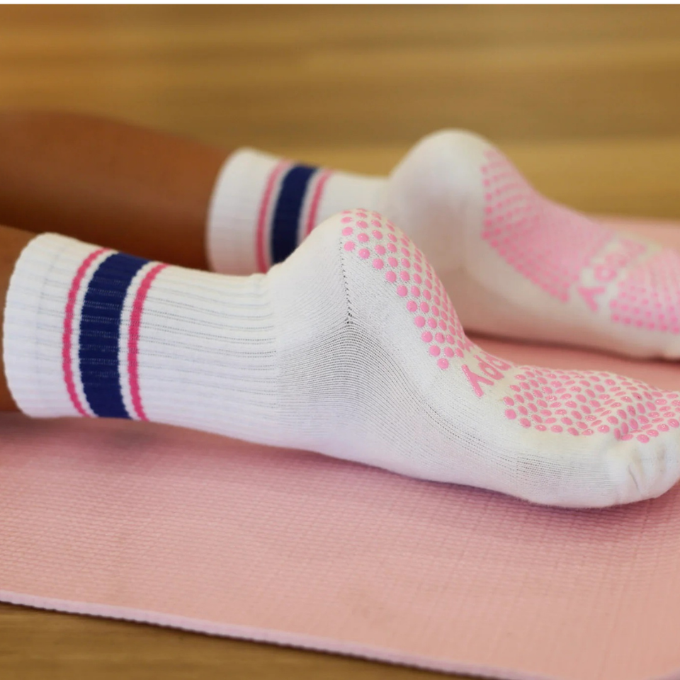 Custom Pilates Grip Socks Women Anti-Slip Crew Stripe Cuffs Cotton Yoga Eco-Friendly Indoor Letter Daily Use Anti-Bacterial