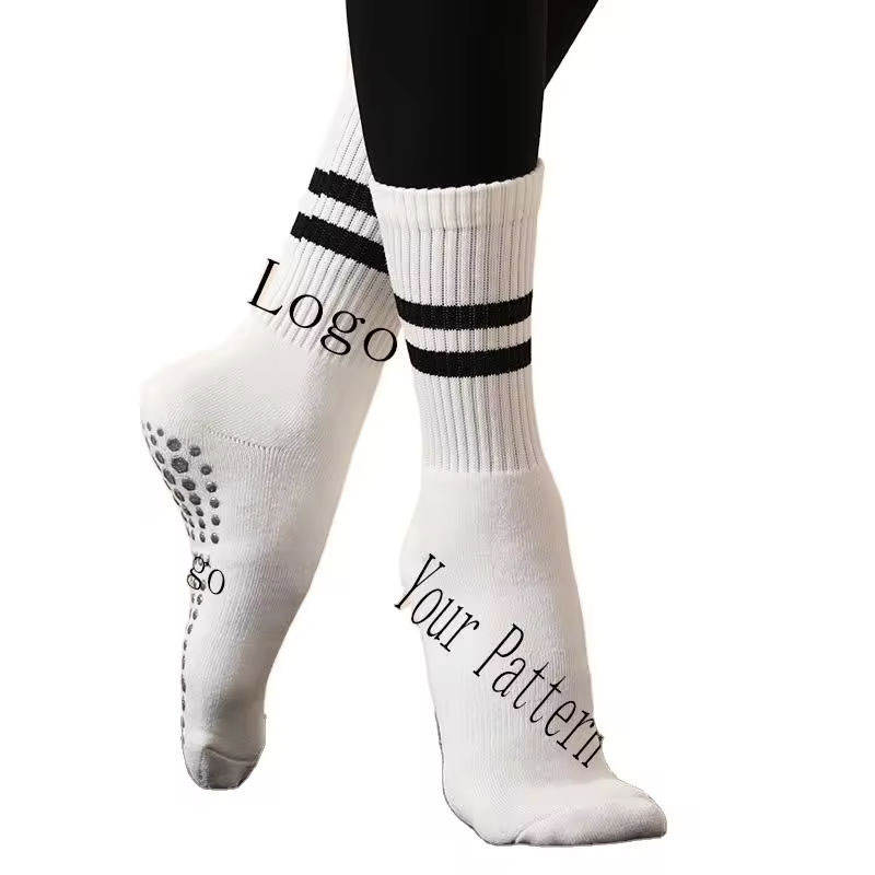 Custom Pilates Grip Socks for Women and Men Workouts Pilates Socks Crew Strips High Quality Cotton Custom Color Pilates Socks