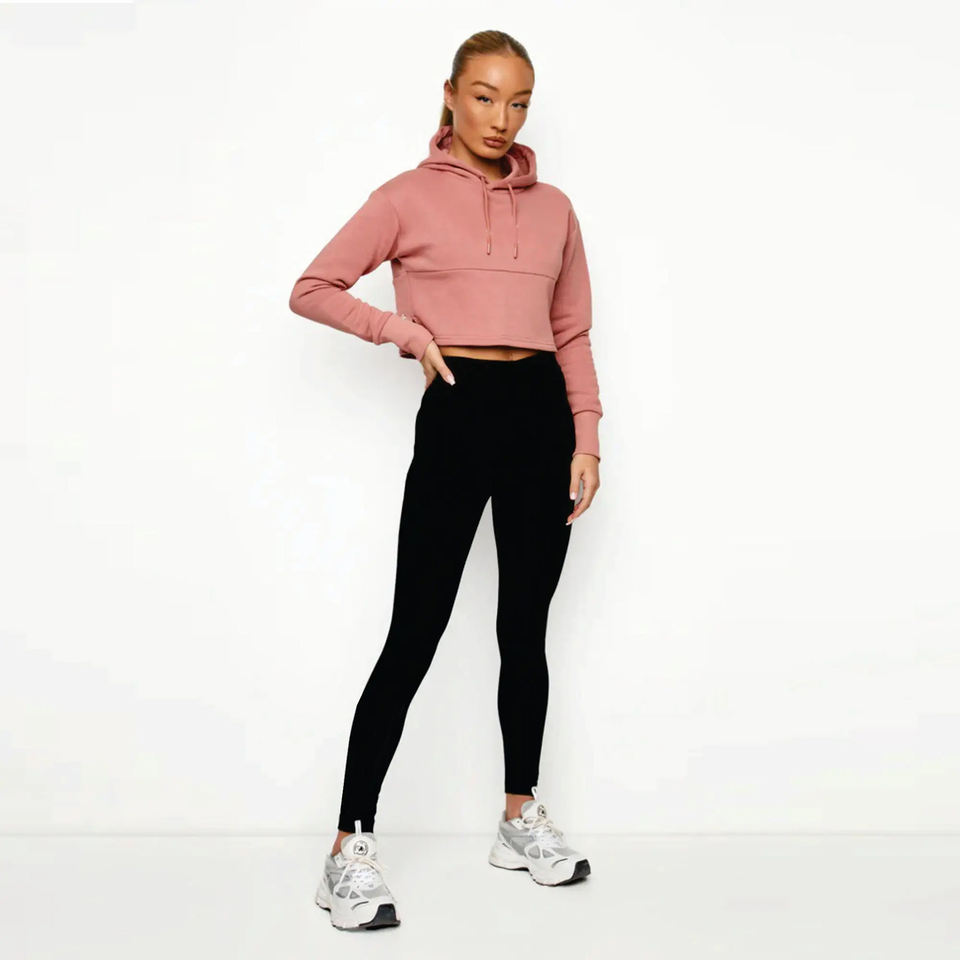 Custom Pink Cropped Hoodie for Women Fleece Pullover Long Sleeve Sweatshirt Casual Streetwear for Branding