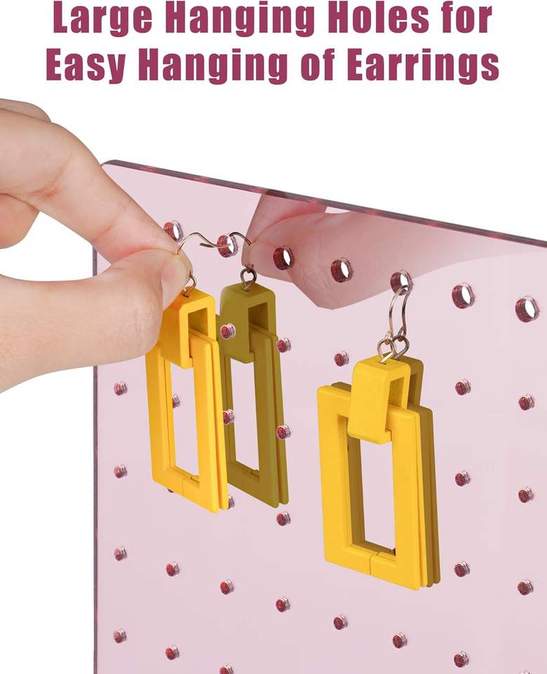 Custom Pink Display Stand Acrylic Earring Card Display Stand Jewelry Display Rack With Hooks
