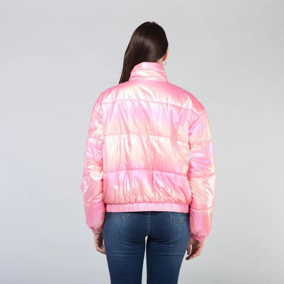 Custom Pink Shiny Puffer Jacket Fashion New Design High Quality Casual Windproof Style Padded Printing Breathable Women Jacket