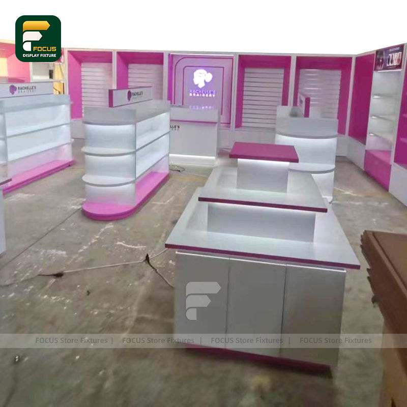 Custom Pink Wall Display Shelf Cabinet Hair Extension Retail Rack Wig Shop Storage Fixture Unit Shelving Stand