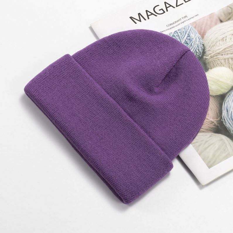 Custom Plain Color Casual Rib Knit Cuff Beanie Hat with 3D Embroidery and Image Style Unisex Winter Warm Hat