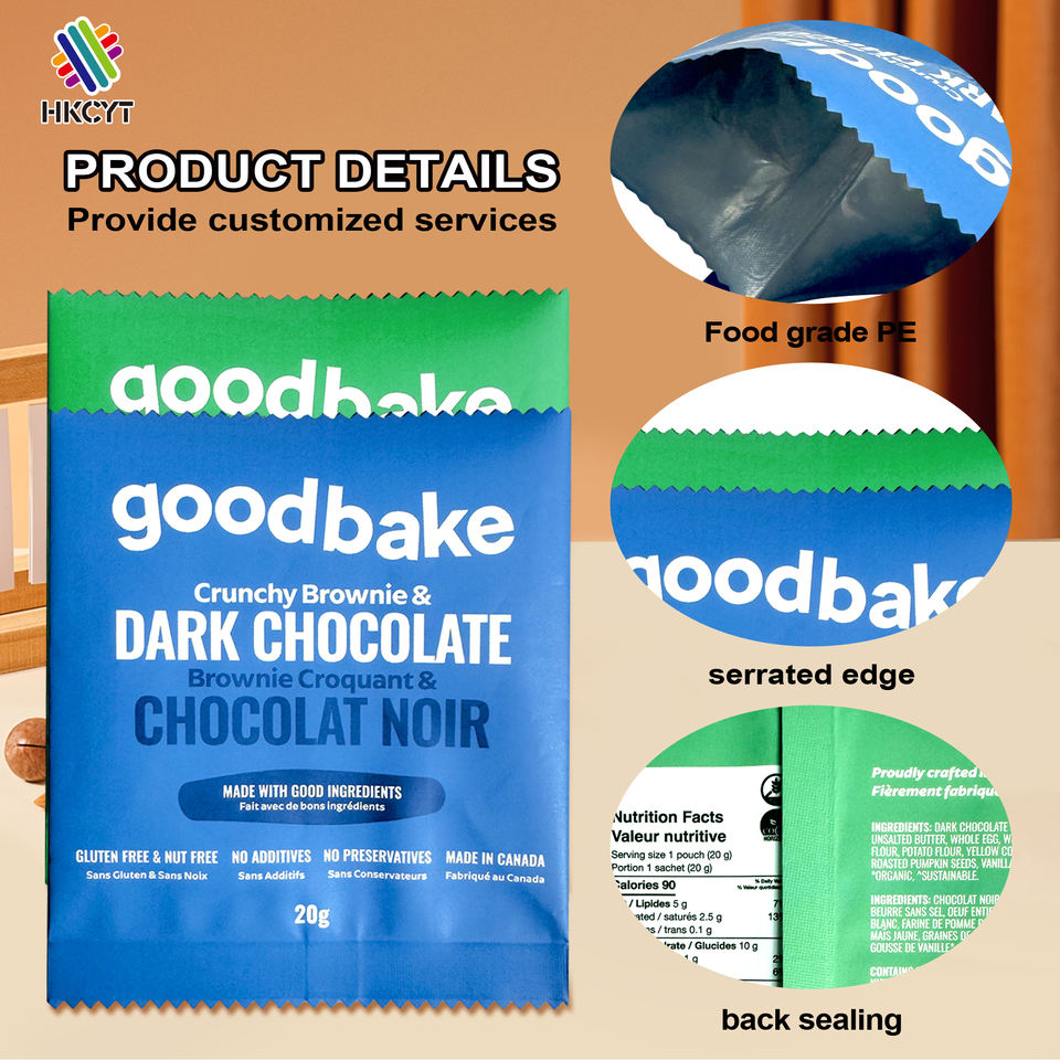 Custom Plastic Bags Mylar Bag Back Seal Pouch Heat Seal Bags for Cookies with Seal Heat Sealable Wave Edge