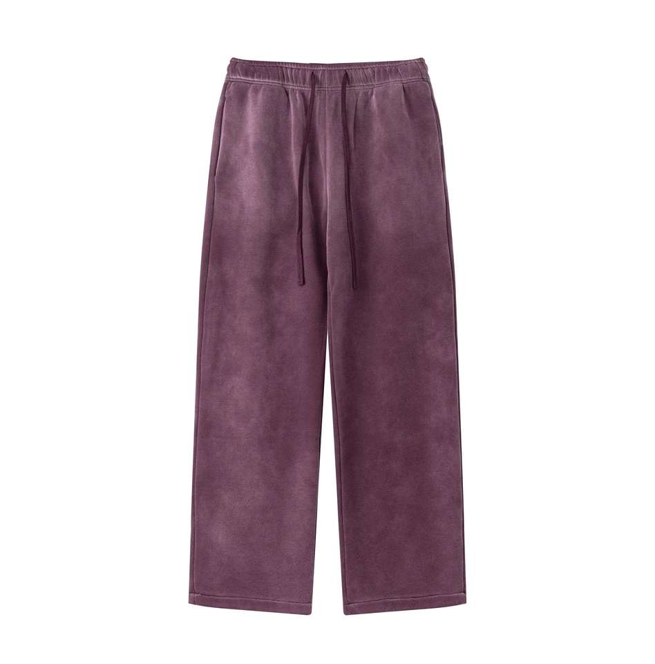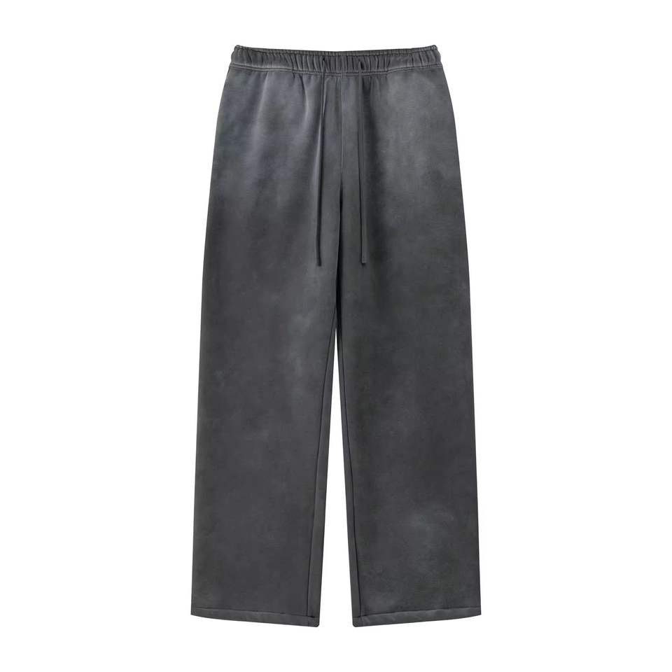 Custom Plus Size Streetwear Sweatpants Midweight Zipper Fly Wide Leg Straight Leg Trousers Vintage Sun Faded Men Fleece Waist