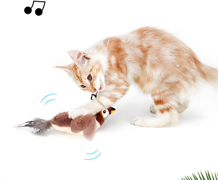 Custom Plush Interactive Flying Cat Toy , Automatic Flapping Wings & Bird Chirping, Detachable Electronic Pet Chase Toy/