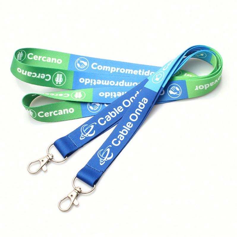 Custom Washable Durable Eco-Friendly Polyester Lanyard Silk Screen Neck Strap Double Metal Hooks Clips for Exhibition ID Cards