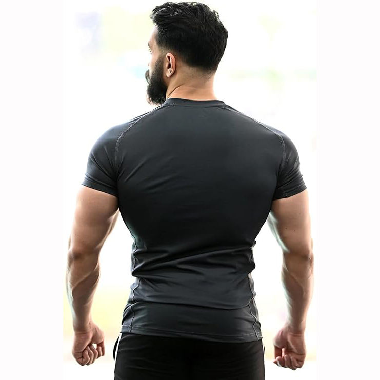 Custom Polyester Men's Gym T-Shirt Quick Bodybuilding Mesh Stretch Sport Shirt for Running with Printed Design