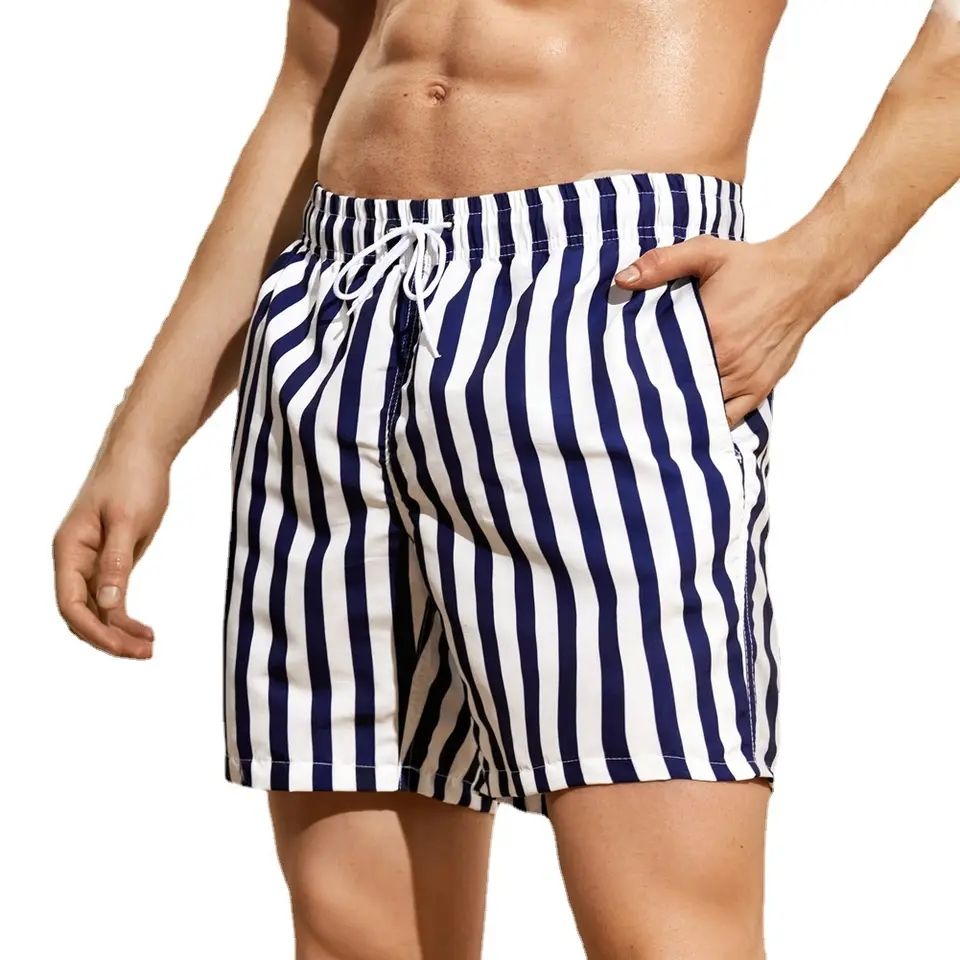 Custom Polyester Summer Beach Board Shorts Swimwear Mens Swim Trunks Quick Dry Stripe Swim Trunk for Men DDP Shipping