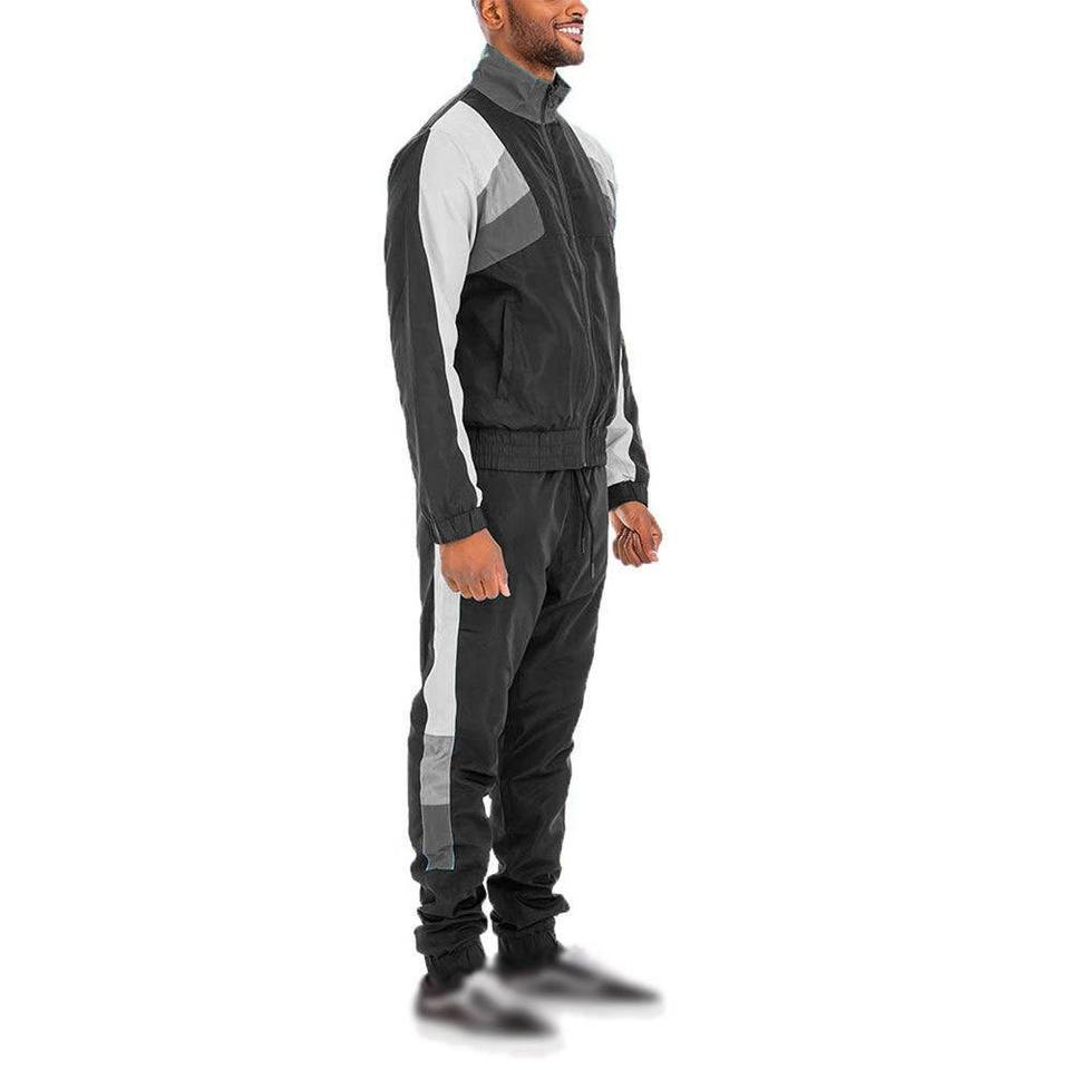 Custom Polyester Windbreaker Sweat Suits Tracksuit Color Block Nylon Track Suit Jogging 2 Piece Set Training Wear Hooded Collar