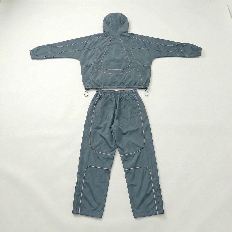 Custom Polyester Zip up Oversized Reflective Waterproof Windproof Nylon Jacket and Track Pants Jogger Sets Nylon Tracksuit