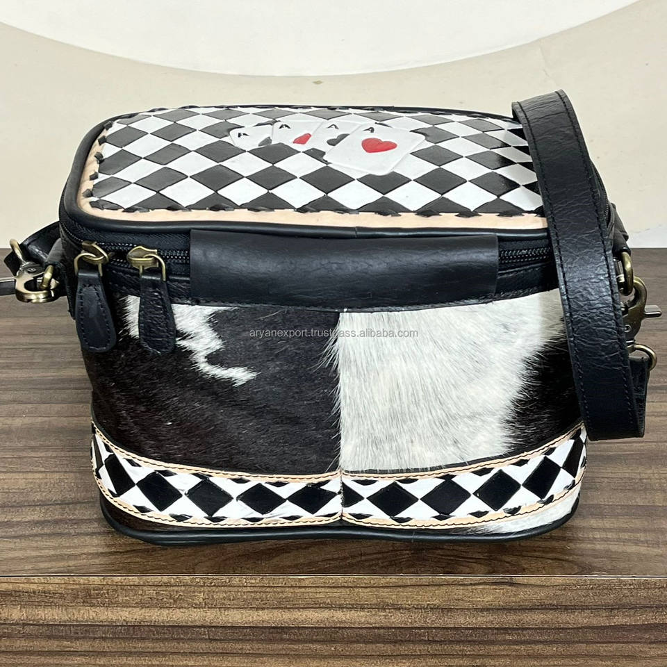 Product Name:Hand Tooled Checkered Leather Crossbody Cosmetic Bag