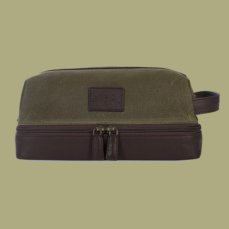 Custom Portable Waterproof Canvas Men's Travel Toiletry Bag Zipper Closure Leather Dopp Kit Toilet Bag for Shaving