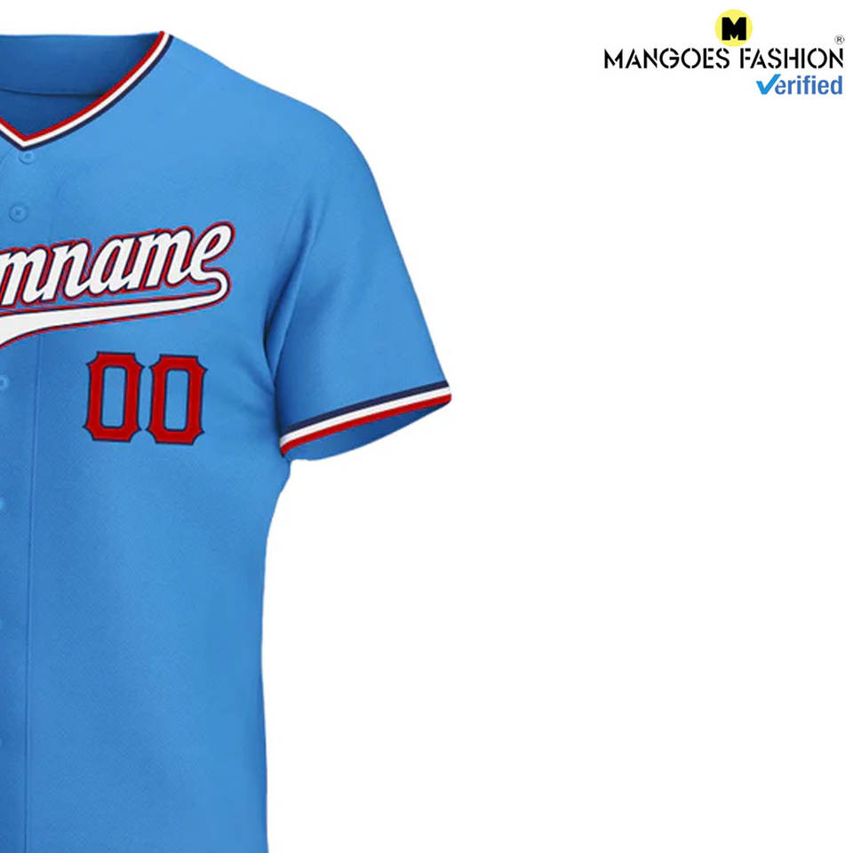 Custom Powder Blue White-Red Authentic Baseball Jersey Athletic Cut & Exquisite Stitching Ensuring Durability Style