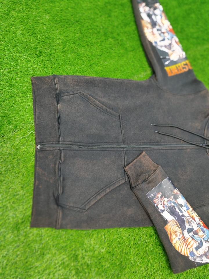 Premium Oversized Heavyweight Hoodie for Men - Vintage Acid Wash Black, 100% Cotton Streetwear Zip-Up