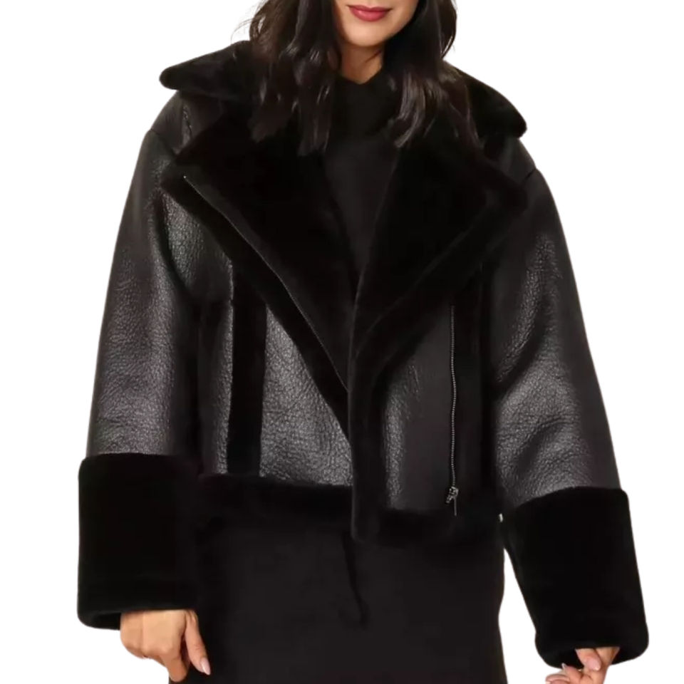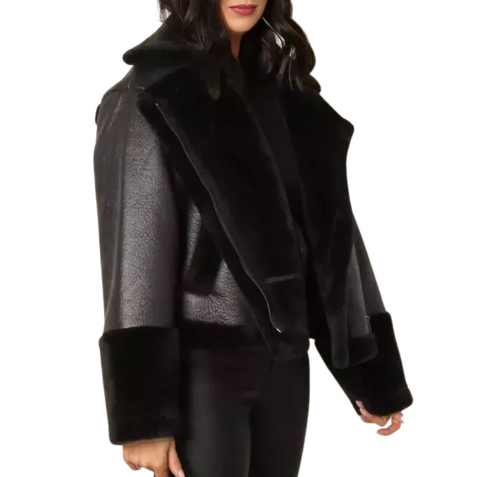 Custom Premium Leather Fur Jacket for Women Real Fur Collar Winter Coat Casual Style