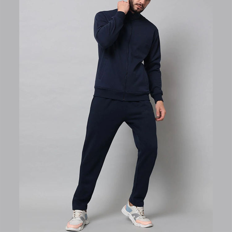 Custom Premium Quality Regular Fit Comfortable With Pocket Tracksuit Plain Full Zip Knitted Cotton Polyester Jogging Suit Men