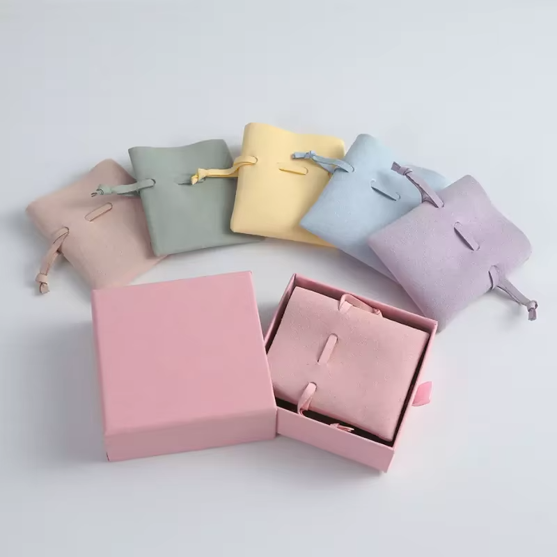 Custom Print Embossed Logo Gray Microfiber Suede Fabric Durable 8x8cm Small Gift Drawstring Jewelry Pouch Bags for Pendant