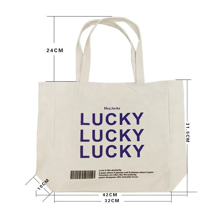 Custom Print Logo Cotton Large Shopping White Canvas Tote Bag With Pocket and Zipper 27
